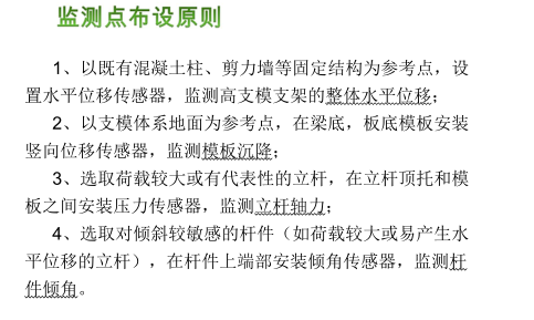 高支模監測是采用高新技術手段從監控層面進行的安全控制和事故防范,對高大支模體系進行監測,為動態設計、信息化施工提供依據,從而降低施工安全風險。