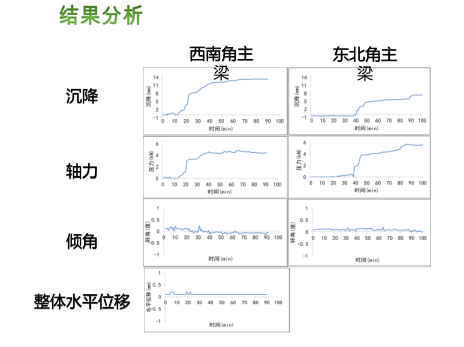 2、混凝土澆筑到對應監測點區域時段時,該點處立桿變形、應力變化達到最大值,且該變化具有突發性、持續時間短,變化速率大的特點,此時高支模危險性最大。因此,在該時段需密切關注各項監測參數的變化情況;