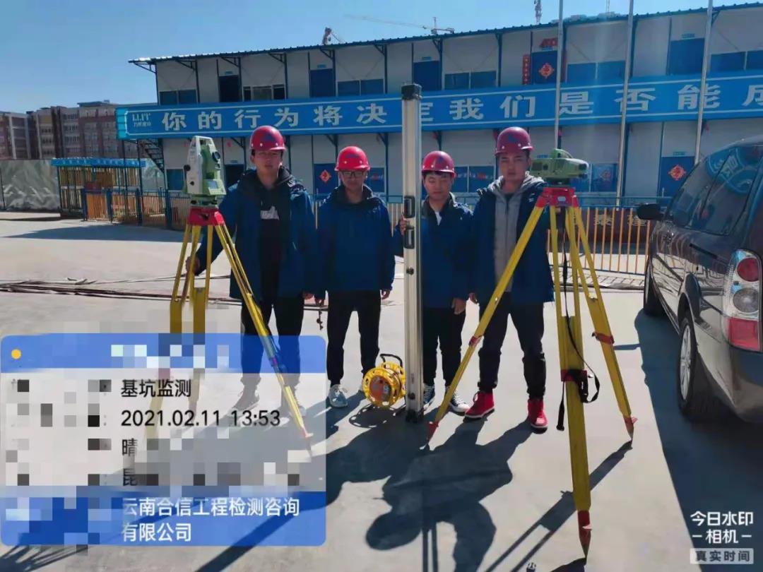 對于趙敏等七位同事來說,除了街上購置年貨的人群提醒他們今天是除夕以外,進入到工地現場后,仿佛又進入日常工作的一天。變形監測工作任務分配、技術交底、安全注意事項......,慣例的準備工作結束后,七位同事立即開始了上午的監測工作;儀器架設、基準點聯測、監測點數據采集記錄,上午的監測工作結束后,大家又匆匆趕往下一個基坑監測項目。