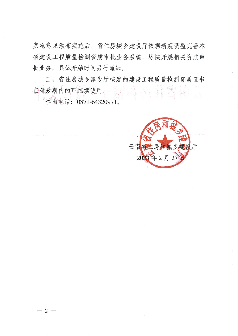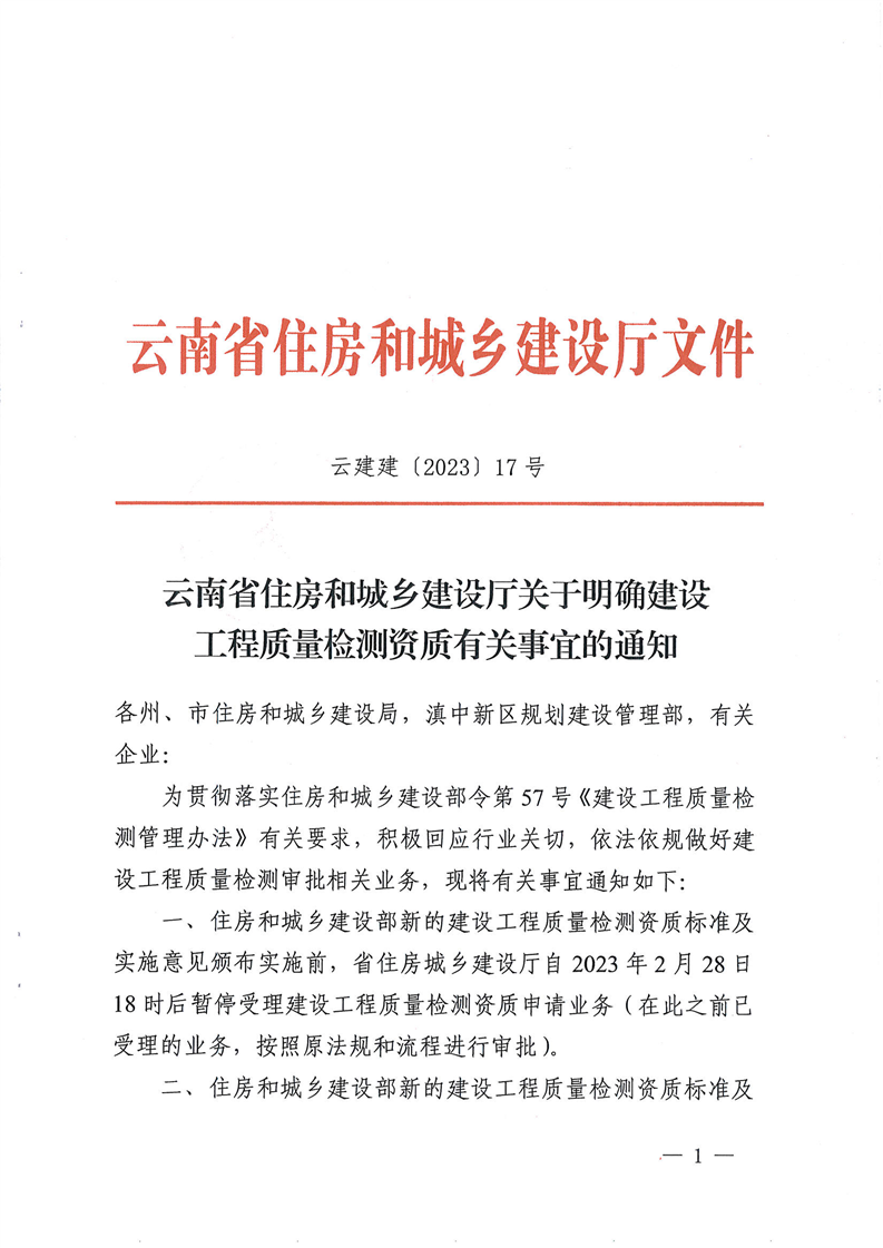 云南省住房和城鄉(xiāng)建設(shè)廳關(guān)于明確建設(shè)工程質(zhì)量檢測(cè)資質(zhì)有關(guān)事宜的通知